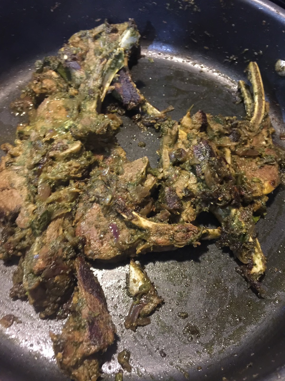 - Take a pressure cooker, add the lamb chops, salt, turmeric pwd, chili pwd, ginger garlic paste and very little water and cook the chops.